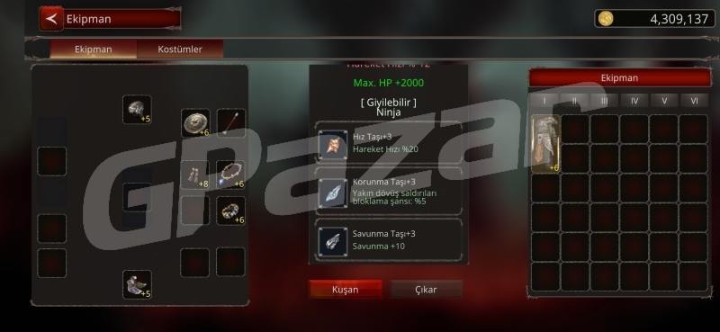 2. +6 NADİR NINJA ZIRHI 2 K HP 3 TAŞLI 500 TL - halitcan28 - GPazar