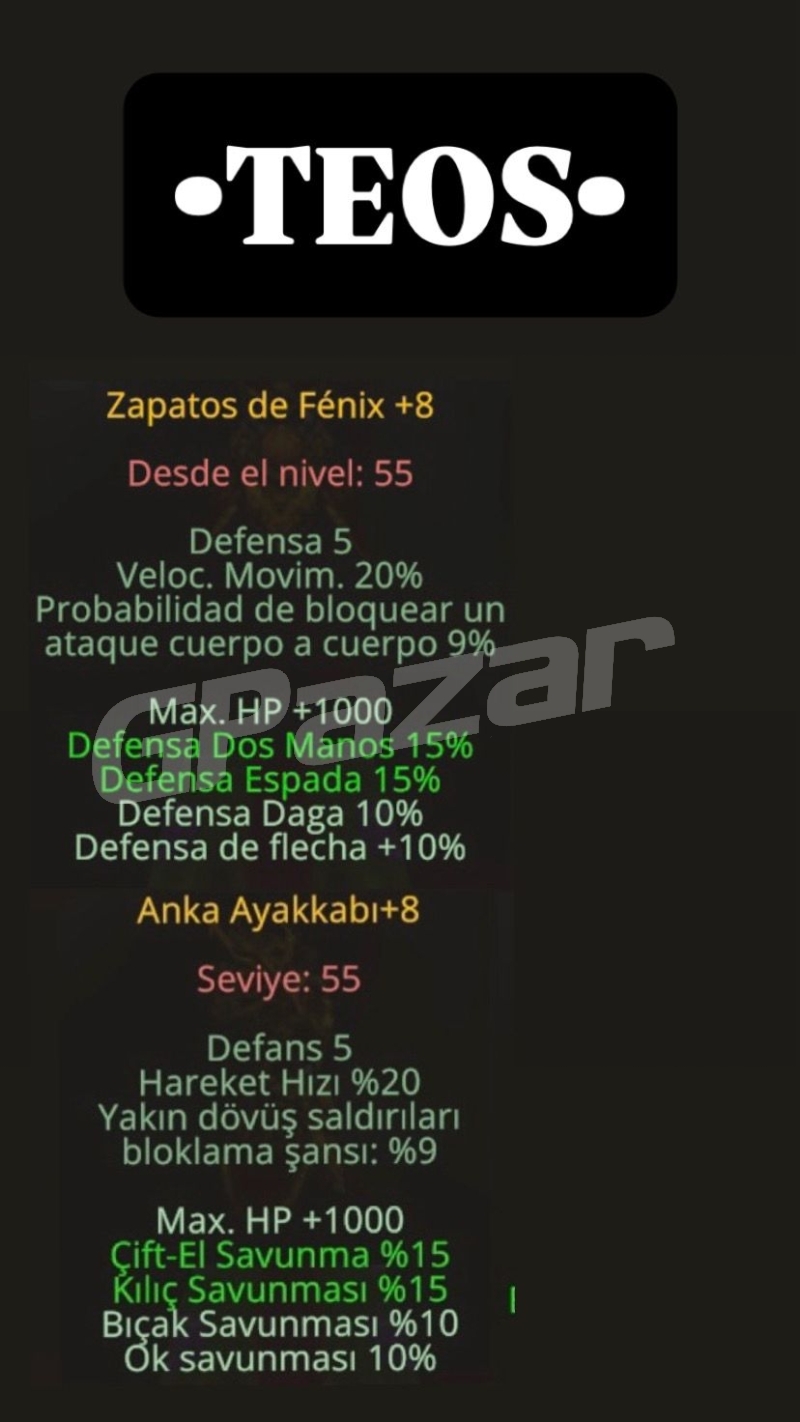 2. +8 ELİT ANKA//15kılıç/15çift/10 ok/10 bıçak/1k hp - zprayz - GPazar