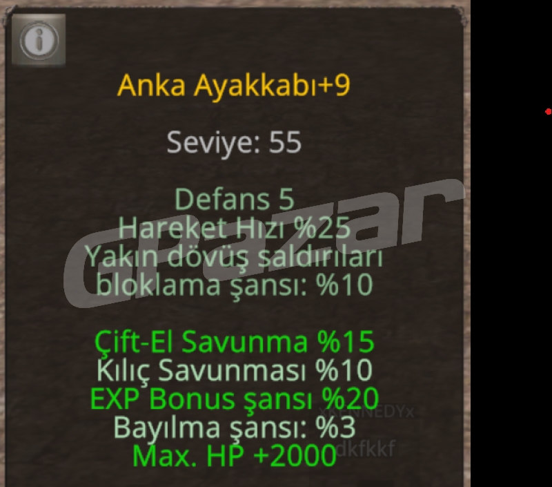2. +9 Anka 2k hp - 15 çiftel - 10 kılıç - 20 exp - 3 bayılma - oguzhan40 - GPazar