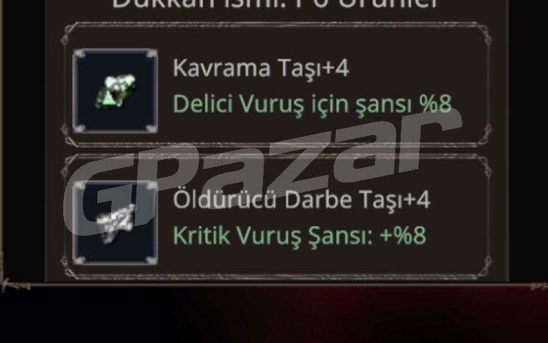 Üzerinde +4 taşlar var kritik ve delici