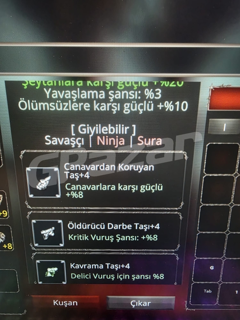 +9 ZEHİR KILICI 30 ORT 20 ŞEYTAN + TAŞLI