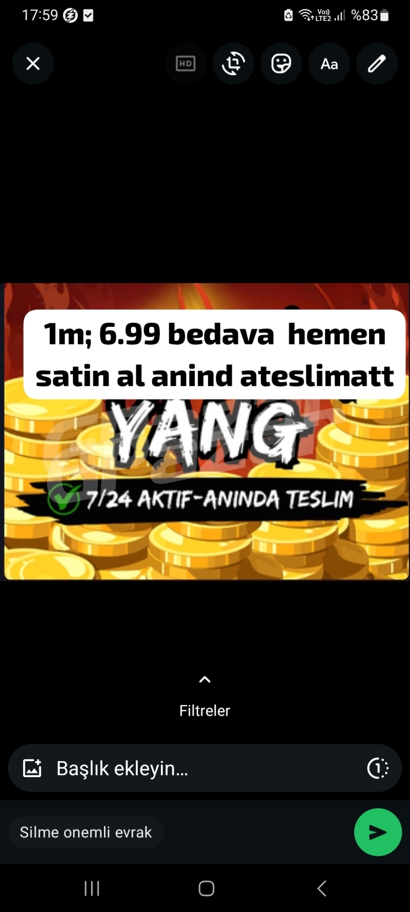 Siparişiniz Otomatik olarak (anlık) teslim edilecektir. Paranız %100 GPazar güvencesi altındadır. İlan ile ilgili şikayetim var